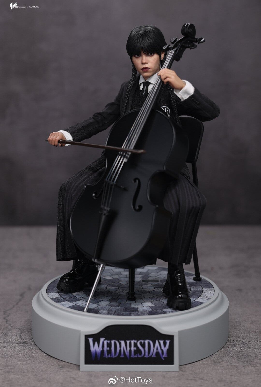 - Black cello with bow